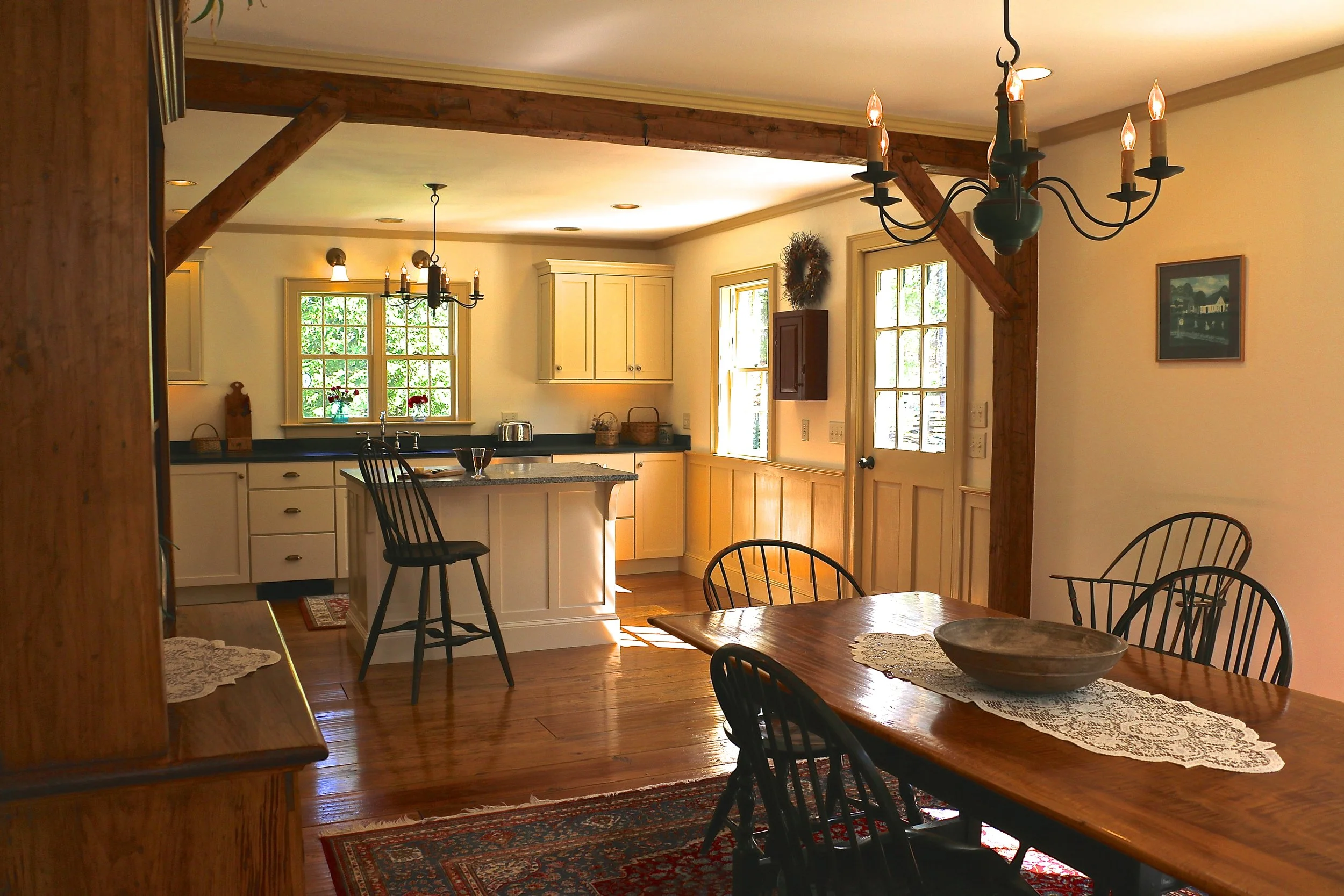 New Cabinets, Island, Wainscoting and New "OLD" Antiqued Pine floor.