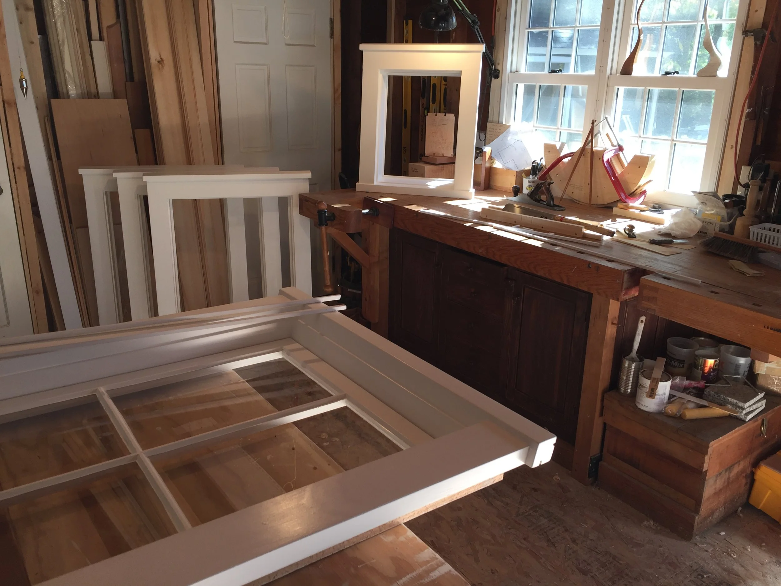 Building New "OLD" window frames in the shop. Boston 2/2 sash being installed in new frames. Very authentic.